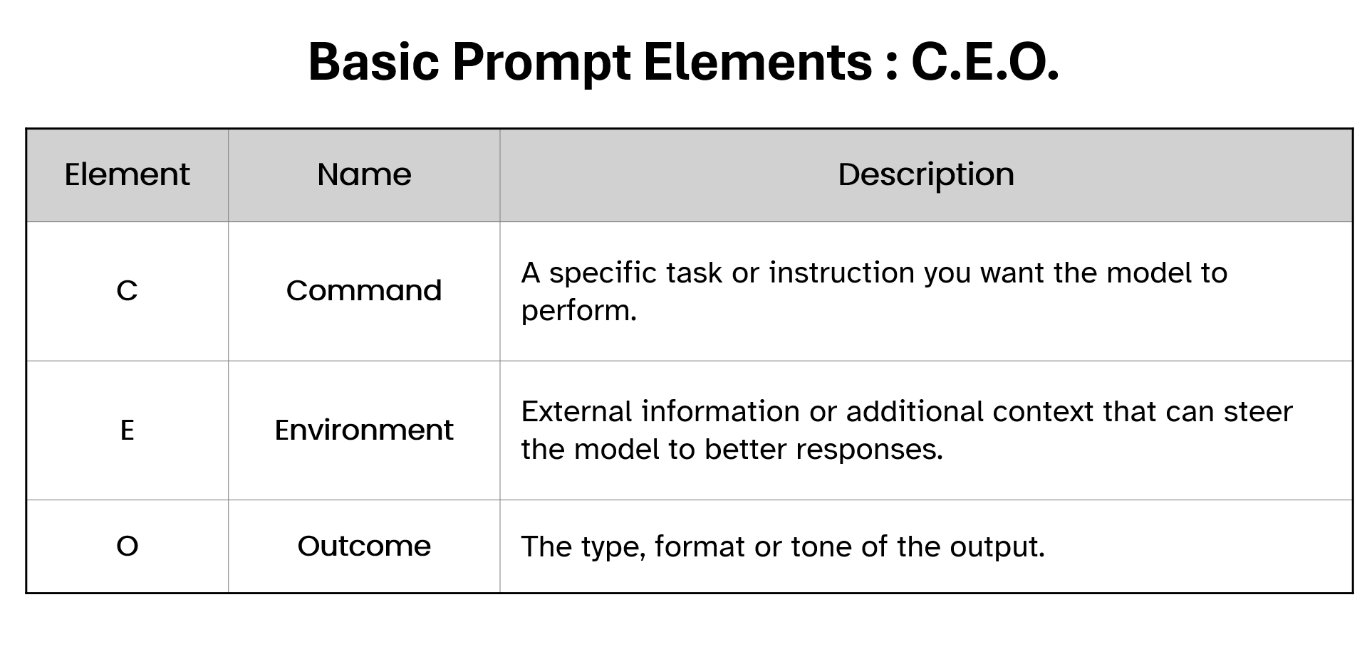 OpenAI launches GPT4 - Basic Prompt Elements - C.E.O.